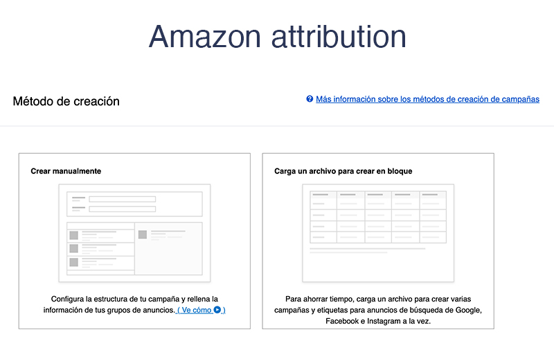 - Creas una campaña de atribución desde el panel de Amazon Ads.