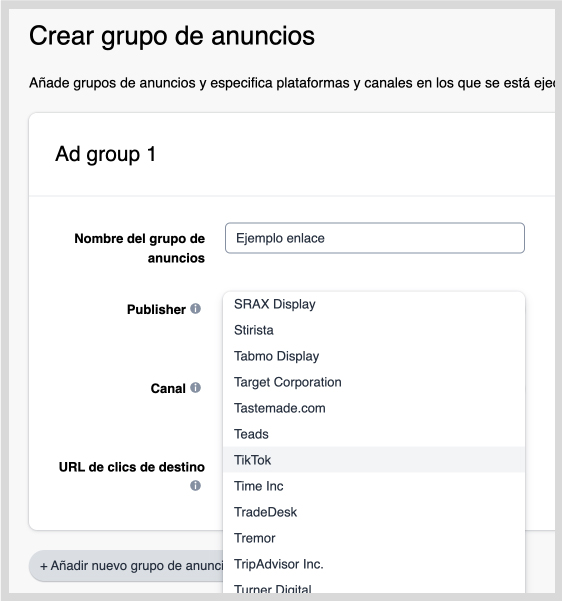 - Selecciona el tipo de medio: social, buscadores, email, display…