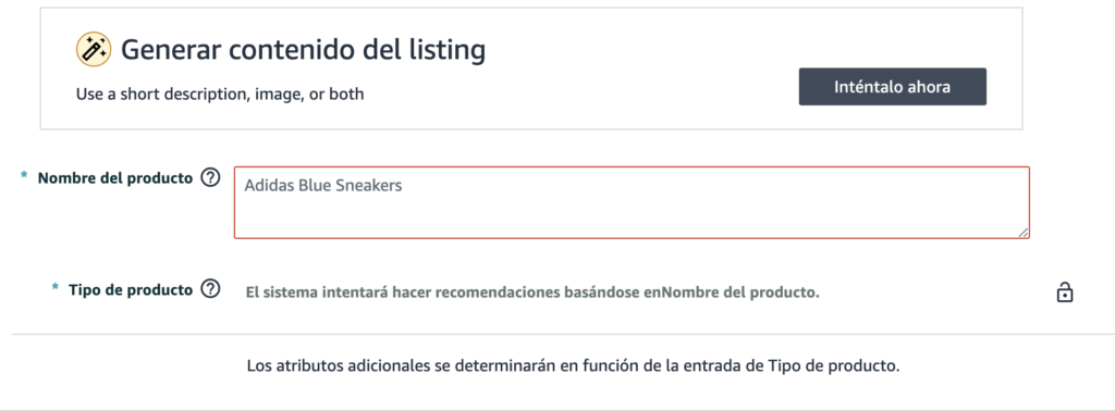 3. Empiezas a completar la información del producto