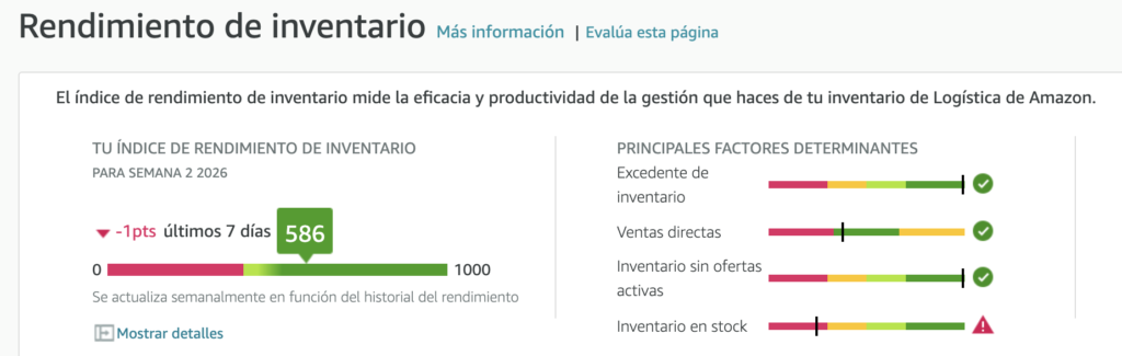 Cuando tu inventario es alto y las ventas no acompañan, Amazon interpreta que estás ocupando espacio innecesario… y ahí empiezan los problemas.