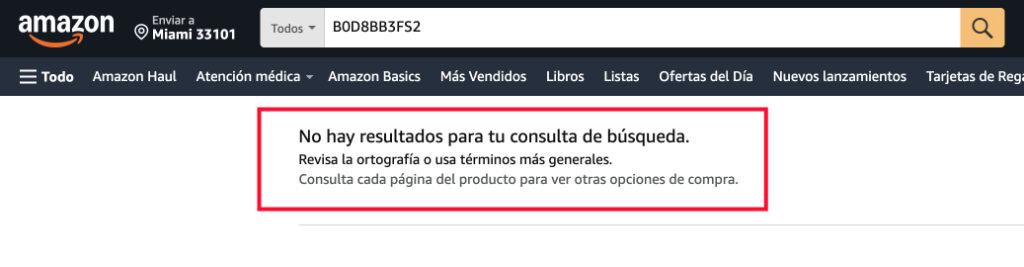 Si escribes el ASIN exacto y no aparece, suele indicar: